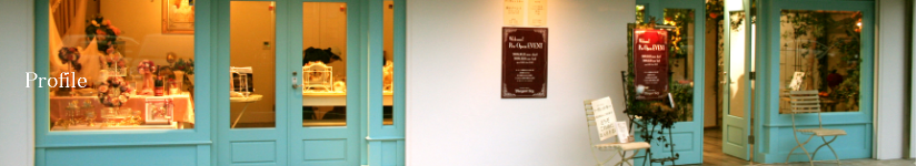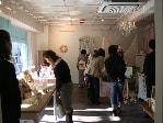 相模原市 橋本駅の表通りから一本入った静かな路地裏に、ヨーロッパの町並みのような白い壁と水色の扉。まるで二つの店を使っているように左右に分かれています。向かって左がショップ、右がレッスンスペース。皆さんくつろいでいってください。(写真は2008年10月プレオープン展示イベント中のものです)