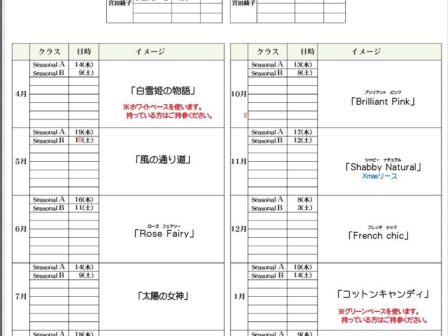 エチュードコース・マーガレットコース・生花のコース です。