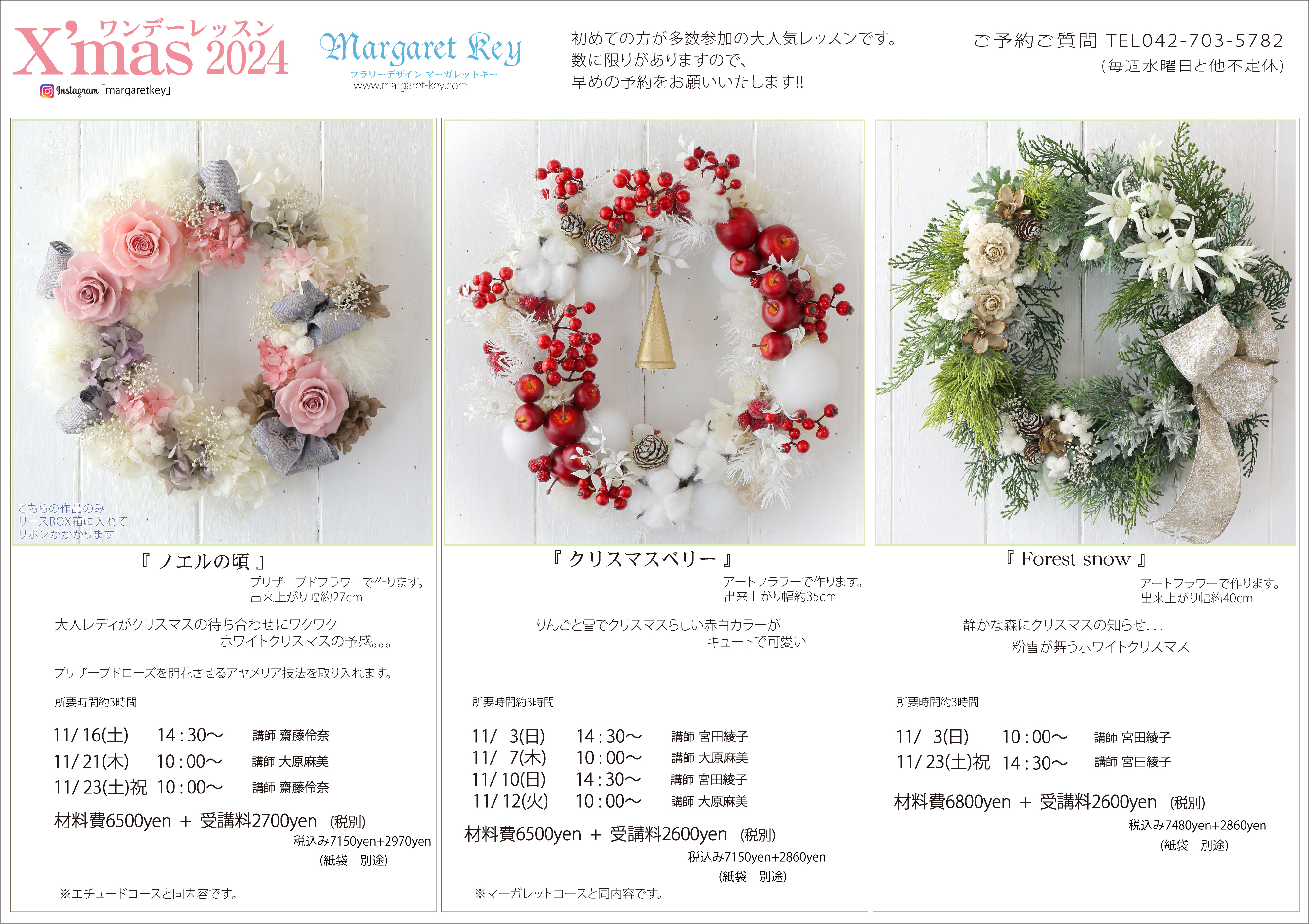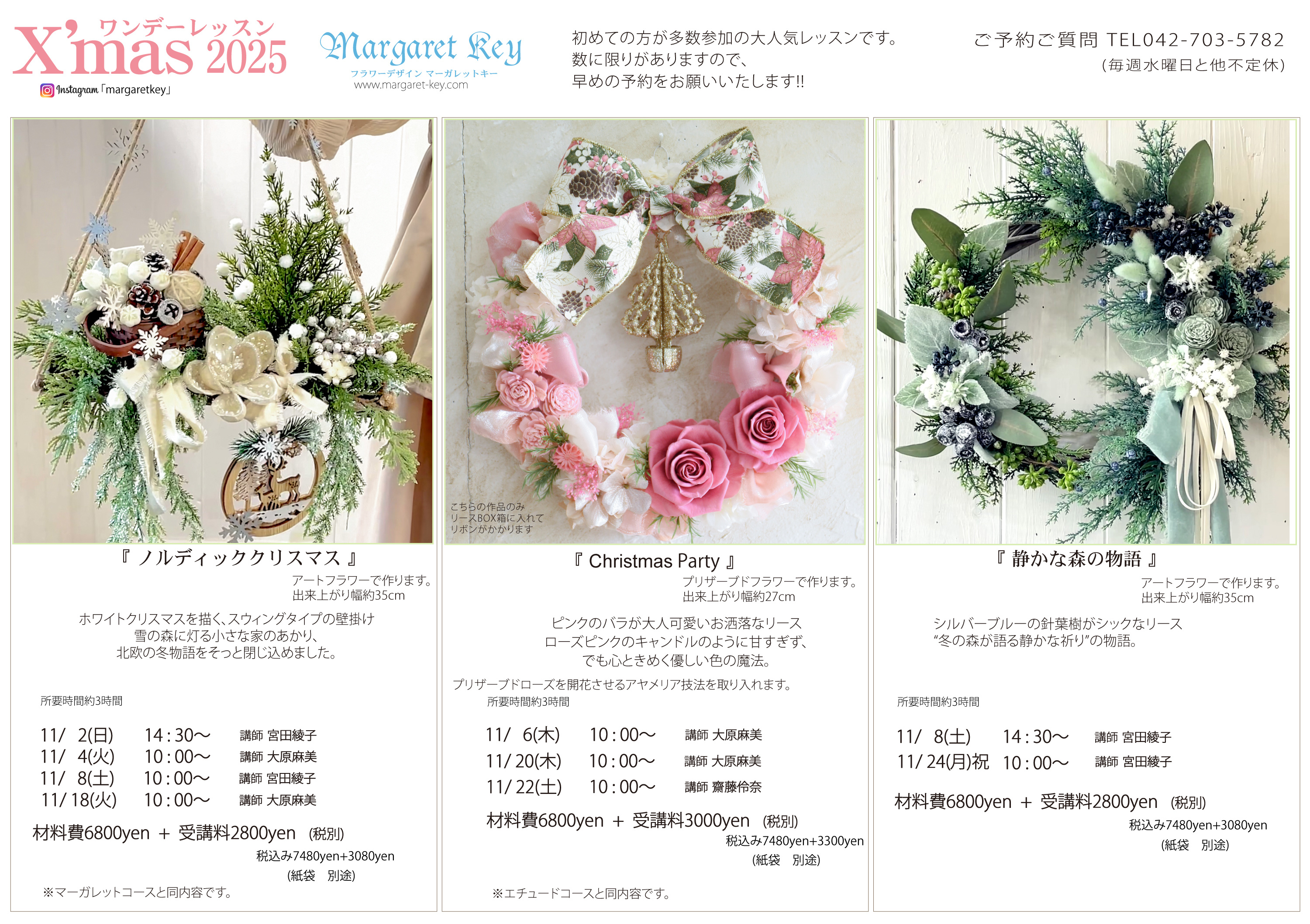 🌼お申し込みはお電話にて承ります。